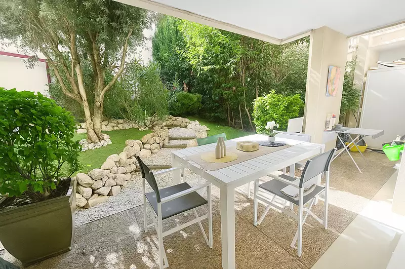 L'espace de vie s'ouvre sur une terrasse et un jardin à jouissance privative et exclusive, véritable prolongement de l'appartement où règne une atmosphère paisible. La cuisine, indépendante mais facilement modulable, permet d'envisager différents aménagements selon les envies. Les deux chambres profitent également d'un accès direct à une seconde terrasse, créant une agréable continuité entre intérieur et extérieur. Une place de parking sécurisée en sous sol.