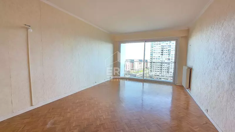 Situé au 9ème étage d'une résidence sécurisée, bien entretenue, à proximité immédiate des transports, des commerces et des écoles, cet appartement de type 3 propose dans la partie jour, une entrée, un séjour donnant sur un balcon, une cuisine indépendante aménagée et équipée.