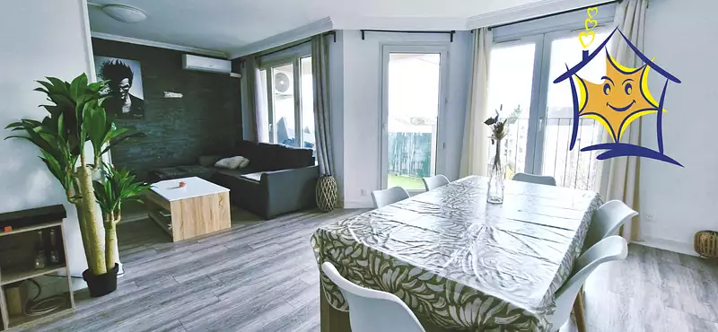 Appartement de type T4, situé dans la copropriété 'Olympe', au dernier étage d'un immeuble de 4 étage - Composé d'un double séjour de 30m², donnant sur une belle terrasse de 9m² environs, deux chambres (Une troisième possible), une cuisine séparée et équipée (possibilité d'ouvrir sur le séjour) une salle d'eau et un WC séparé.