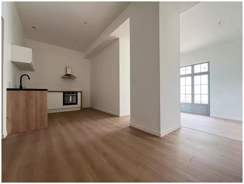 - d'une entrée, une cuisine équipée et aménagée ouverte sur le salon/séjour, deux chambres, une salle d'eau et un wc séparé.