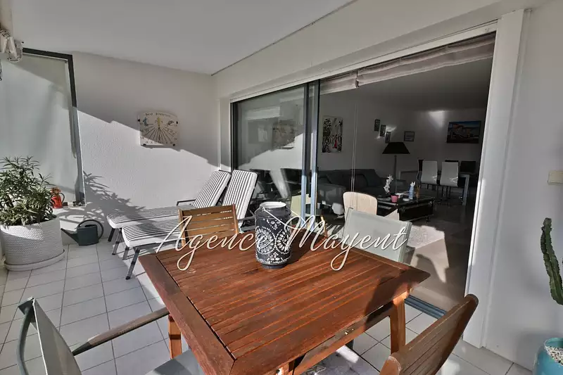 Situé dans une petite résidence récente sécurisée, au calme absolu, cet appartement de trois pièces traversant en très bon état intérieur se compose d'un hall d'entrée, un séjour ouvrant sur une terrasse ensoleillé de 15 m2, une cuisine indépendante qui donne sur une seconde terrasse, une buanderie/dressing.