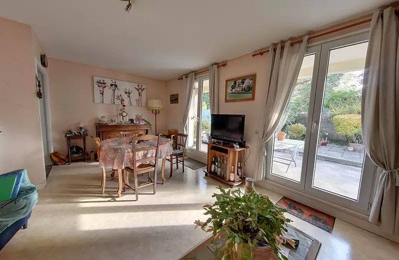 Exclusivité : Dans une résidence au calme de 1985 avec ascenseur située dans le centre ville de Dourdan, Appartement de 3 pièces de 77m² au 1er étage comprenant une entrée, un séjour-salle à manger donnant sur une terrasse et un jardin clos et arboré de 77m², une cuisine aménagée ( possibilité d'une cuisine à l'américaine), 2 Grandes chambres, un dégagement avec 2 placards, une salle de bains de 7m², un WC indépendant, une cave et un box fermé pour 2 voitures mesurant 26m². Accès aux Commerces à 100 mètres , 10 minutes à pied de la gare ainsi que des écoles et du château . Copropriété de 40 lots dont 13 appartements, charges de copropriété de 4495 euros par an comprenant l'eau froide l'eau chaude le chauffage et les communs. Honoraires à la charge de l'acquéreur de 6% TTC inclus dans le prix affiché. L'acheteur pourra se renseigner sur les risques auxquels un bien est exposé en allant sur le site www.georisques.gouv.fr (6.00 % honoraires TTC à la charge de l'acquéreur.) Copropriété de 40 lots - dont 13 lots habitation. (Pas de procédure en cours). Charges annuelles : 4495 euros.