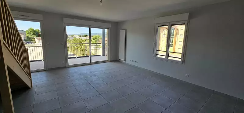 Au premier étage d’une copropriété neuve très bien située, cet appartement en duplex de 4 pièces se compose, au 1er niveau : d’un hall d’entrée, wc, rangements et d’un séjour lumineux avec accès à une terrasse de 12 m² exposée Sud avec un coin cuisine non aménagé. À l'étage supérieur, vous trouverez un dégagement avec placard, une salle de bains et trois chambres dont une avec velux et 2 avec placards muraux. Cet appartement est équipé d'une chaudière individuelle au gaz de ville. Un garage complète ce bien (présence d'électricité).