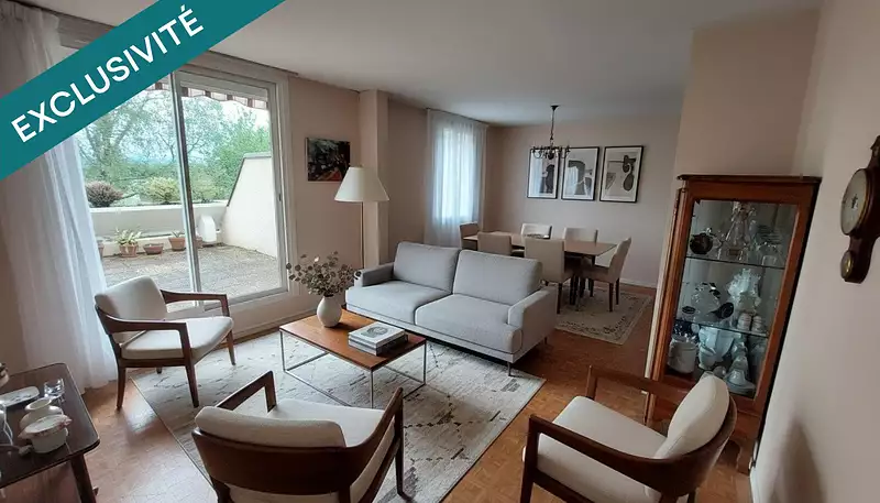 Cet appartement de 77 m², situé au 1er étage propose un espace extérieur appréciable avec une genereuse terrasse offrant un coin tranquille pour se détendre. De plus, il dispose d'une place de parking et d'un garage dans le même bâtiment, offrant ainsi des solutions de stationnement pratiques et sécurisées.