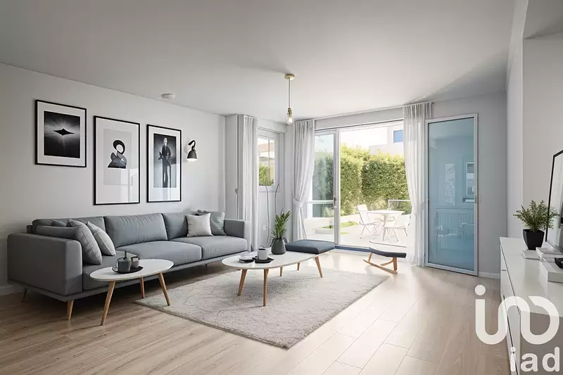 L’entrée mène vers un séjour accueillant, ouvrant sur un superbe jardin privatif clos de 63 m², idéal pour les moments en extérieur.