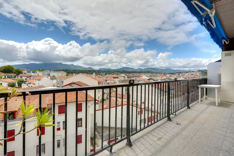 Au CENTRE de Saint-Jean-de-Luz, au sein d'une résidence de standing avec ascenseur, appartement traversant de type T4 de 77,83 m² au 6e étage, avec VUE SUR LA RHUNE ET APERCU SUR LA BAIE