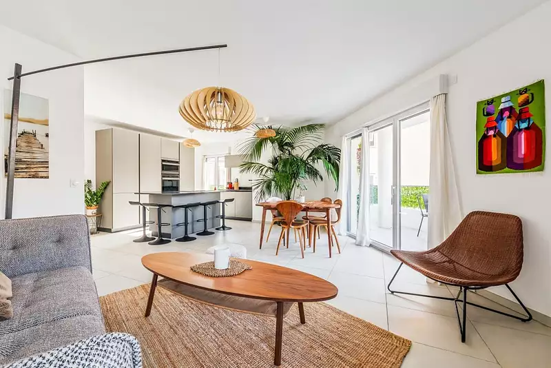 Un grand séjour lumineux avec cuisine américaine de 36m² , idéal pour vos moments en famille ou entre amis
