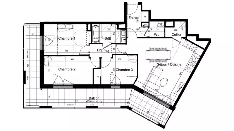 | 77 m² - 4 pièces - 3 chambres | Étage 2/6 avec ascenseur |