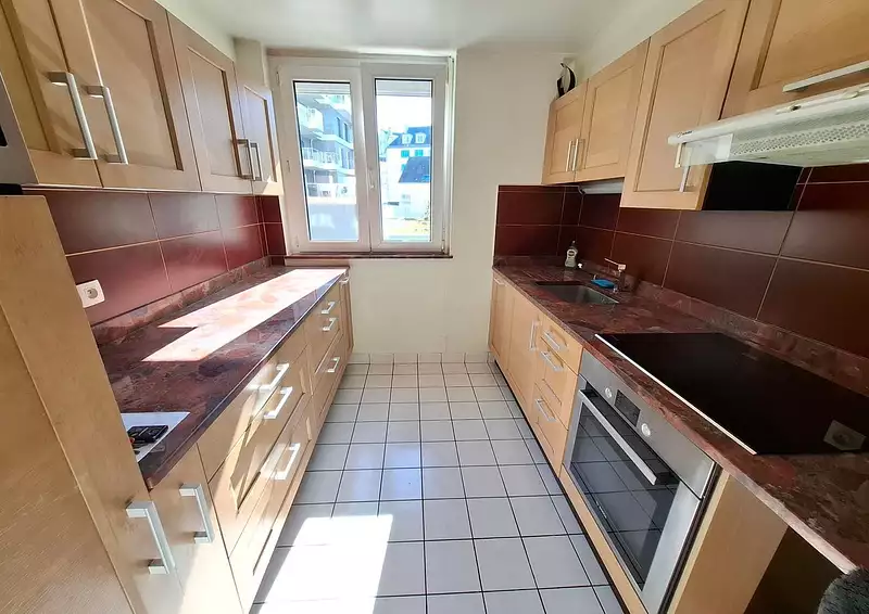 Idéalement situé à deux pas de toutes les commodités, cet agréable appartement de 77 m² vous séduira par sa luminosité et sa configuration. Il comprend une entrée avec placard, un séjour-salon traversant de 30 m², une cuisine aménagée et équipée, trois chambres dont deux avec rangements intégrés, une salle d'eau et des WC séparés. Pour parfaire le tout : un parking collectif ainsi qu'une cave viennent compléter ce bien.