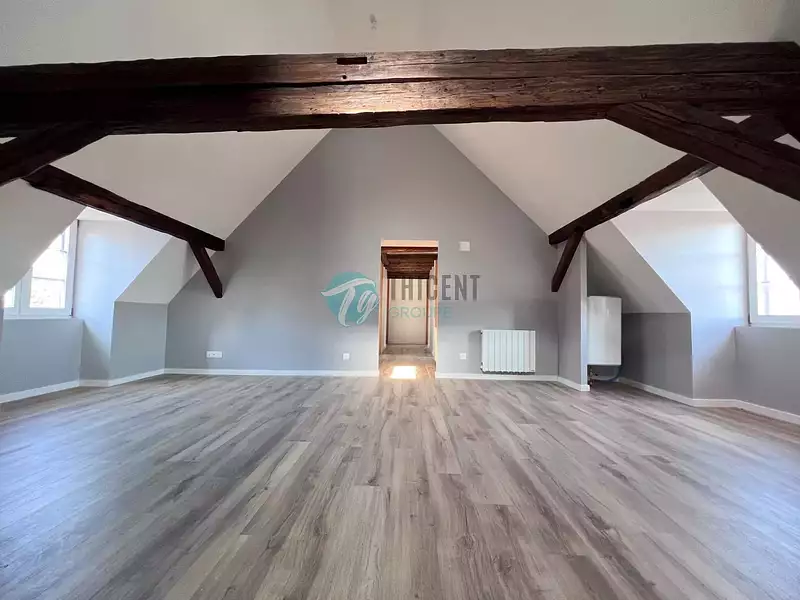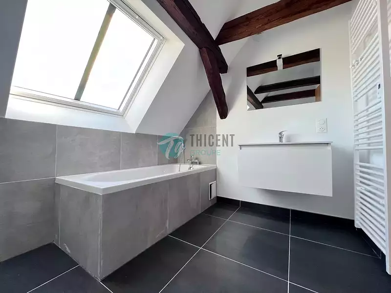 Il se compose d'une lumineuse pièce de vie de 33 m² avec un plafond cathédrale de 4 mètres, de trois chambres, d'une salle de bains ( baignoire ) et de toilettes indépendants.