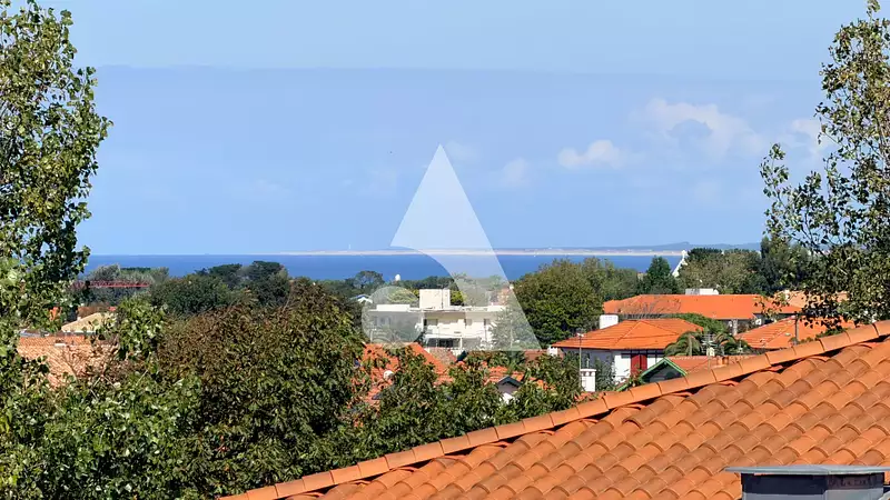 Appartement rénové vue océan Biarritz Larochefoucauld / Aguilera Au 5ème et dernier étage avec ascenseur d'une résidence récemment ravalée, découvrez ce 3 pièces rénové avec goût. Séjour double de 40 m² avec balcon, cuisine équipée, 2 chambres, salle d'eau et WC séparés. Vue dégagée sur les toits, le phare et l'océan depuis toutes les pièces. Résidence calme à 1,5 km des plages, proche commerces, écoles et navette gratuite pour le centre-ville. Un extérieur et une cave de 5 m² complètent ce bien. Stationnement libre sécurisé. En sus : un garage fermé de 21 m² avec porte motorisée. Copropriété de 88 lots - dont 36 lots habitation. (Pas de procédure en cours). Charges annuelles : 1674 euros.