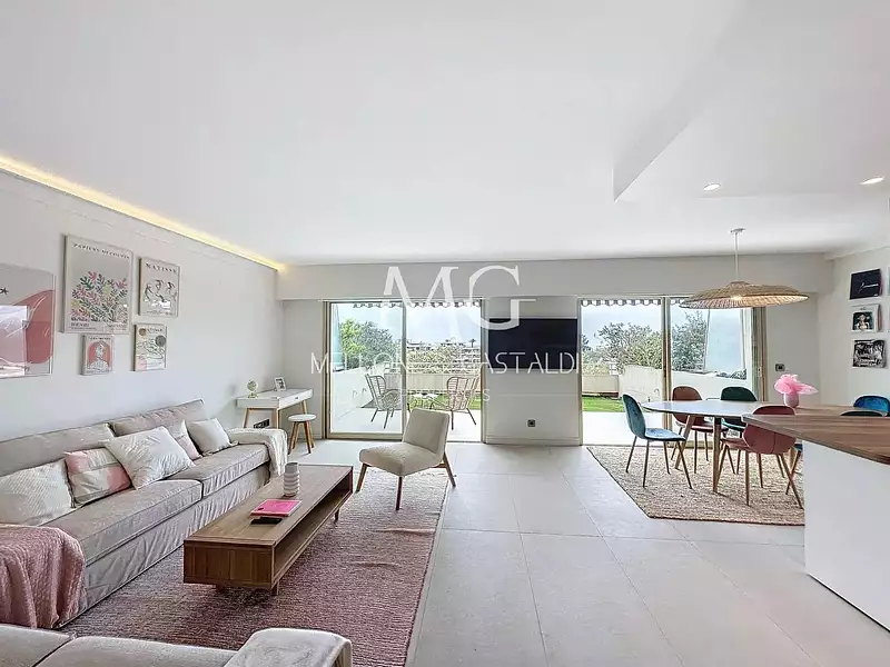 Cannes | à 5 minutes des plages , au sein d'une résidence de grand Standing avec parc et superbe piscine , appartement baigné de soleil composé de 3 pièces de 77,57m2 Carrez avec un grande terrasse de 40m2 au calme absolu bénéficiant d'une vue dégagée et d'un bel aperçu Mer.