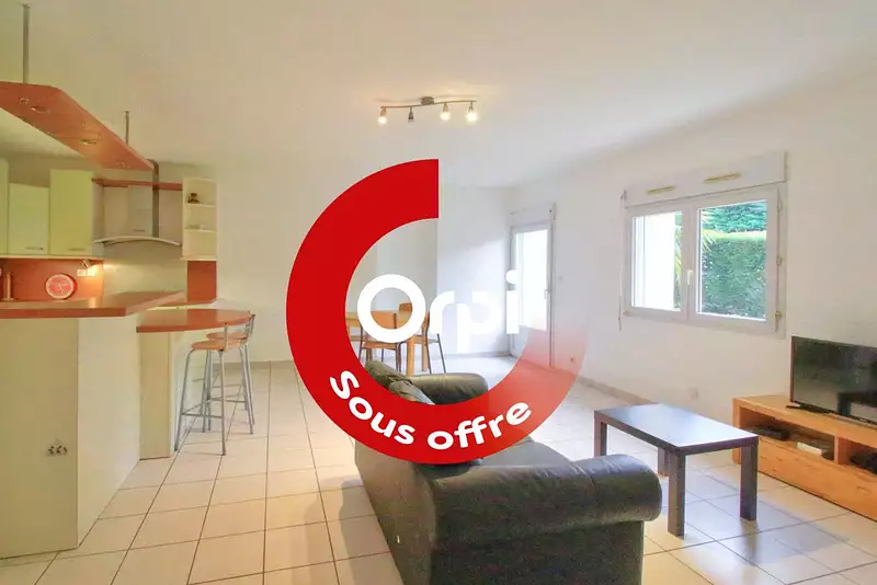 Côté Sud vous trouverez une accueillante entrée avec placards, une cuisine aménagée et équipée ouverte sur le salon-séjour avec accès direct sur un jardin privatif de 30m².