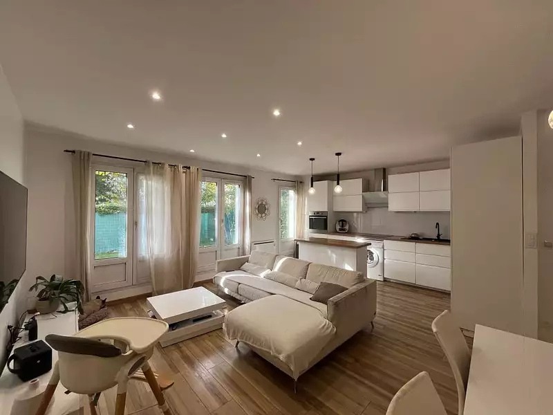 ORPI GAGNY vous propose ce bel appartement de 78 m² situé en rez-de-chaussée dans une résidence recherchée, au pied du parc Courbet et à moins de 10 minutes à pied de la gare.