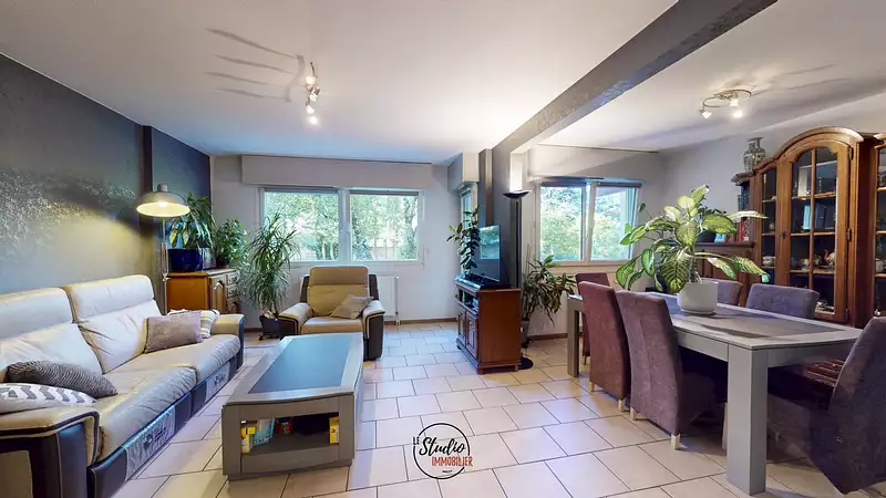 Le Studio Immo vous propose ce charmant appartement T3/4 de 78m² environ, au 1er étage d'une résidence calme avec ascenseur à Mulhouse, construit en 1980 et rénové en 2015.