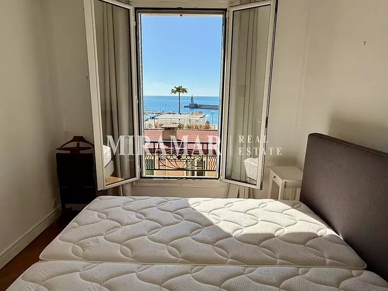 Magnifique séjour avec bow-window, 2 chambres face mer, 1 salle de bain, une cuisine indépendante et des rangements.