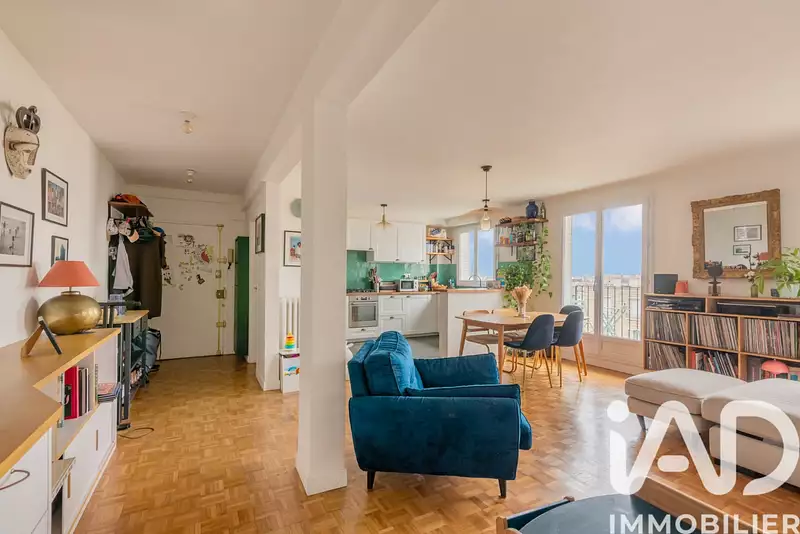 iad France - Philippe Lamand vous propose: EXCLUSIVITE - NOUVEAUTE - Coup de Coeur sur le Triangle de Pantin, face au Ciné 104, pour cet appartement de 3 pièces de 78 m² avec balcon, cave et BOX à 150 m du métro Eglise de Pantin, 300 m du métro Hoche, à 5 mn du Canal de l'Ourcq et aux portes de Paris, situé au 6è étage avec deux ascenseurs, sans vis-à-vis, clair et lumineux avec beaux dégagements, comprend une entrée avec des rangements, un double séjour actuel avec sa cuisine ouverte meublée et son balcon privatif sur cour, deux chambres, une salle de bain avec buanderie, un wc séparé, un dégagement avec beaucoup de rangements, une belle cave et un grand box. Parking à vélos à l'extérieur et un local à vélos à disposition. Parquet partout, double exposition. A proximité de toutes commodités et commerces. (Cinéma 104, Franprix et Leclerc, vélib, métro, bus, rer et tram à dispo) Pas de travaux à prévoir dans la copropriété et le bien. Me contacter pour plus d'information et prévoir une visite...