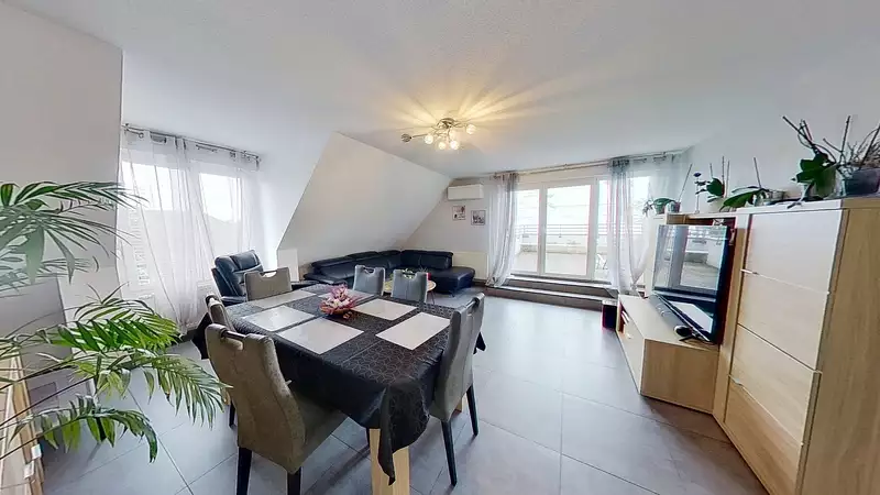 dans résidence des années 2000, proche champs écoles et bus, superbe 3 pièces en attique avec ascenseur, entièrement rénové, 78m2 au sol.