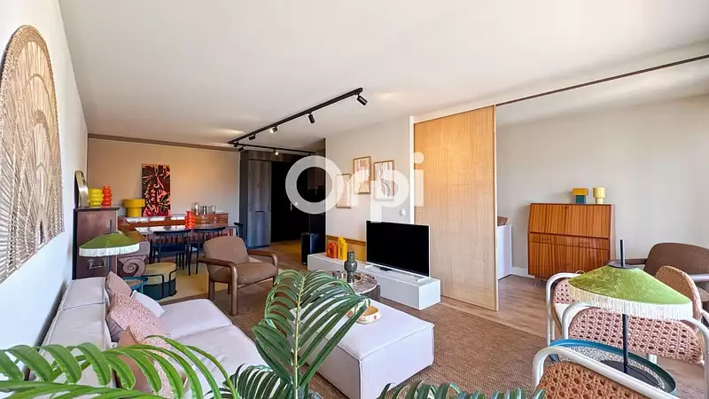 Le séjour particulièrement spacieux, permet d'envisager l'aménagement d'une chambre modulable. Cette flexibilité ajoute un véritable atout à ce bien qui peut s'adapter à différents modes de vie.