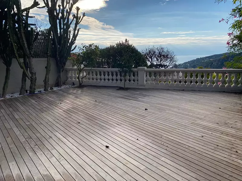 3p villefranche sur mer vinaigrier : a deux pas du col de villefranche, dans une villa divisée en 3 appartements, au premier étage, magnifique trois pièces entièrement rénové avec de belles prestations dont climatisation intégrée et volets roulants électriques. l'appartement qui est vendu meublé avec une cuisine entièrement équipée jouit également d'immenses espaces terrasses et jardin. parking extérieur. produit unique. -