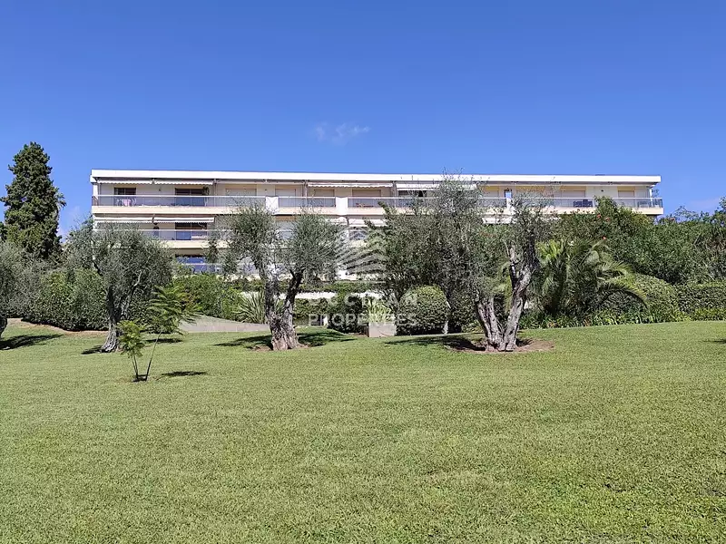 A vendre, appartement traversant de 79 m² dans une belle résidence de standing avec superbe parc avec oliviers centenaires et belle piscine à 15 minutes à pied de la rue d'Antibes à Cannes.
