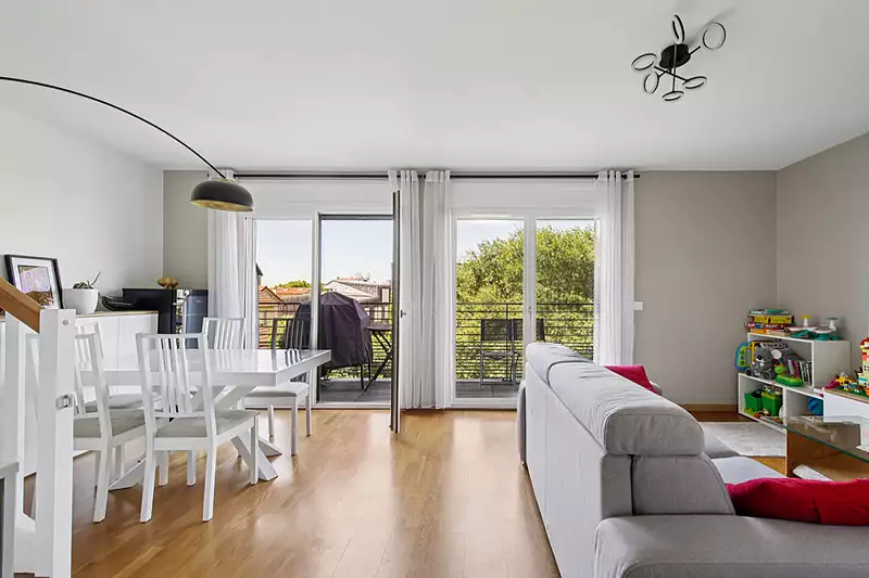 À vendre Nanterre-Ville, magnifique appartement en duplex situé dans un immeuble de 2014, au sein d'une résidence sécurisée, à seulement 6 minutes à pied de la gare de Nanterre-Ville et à proximité des commerces et des écoles.