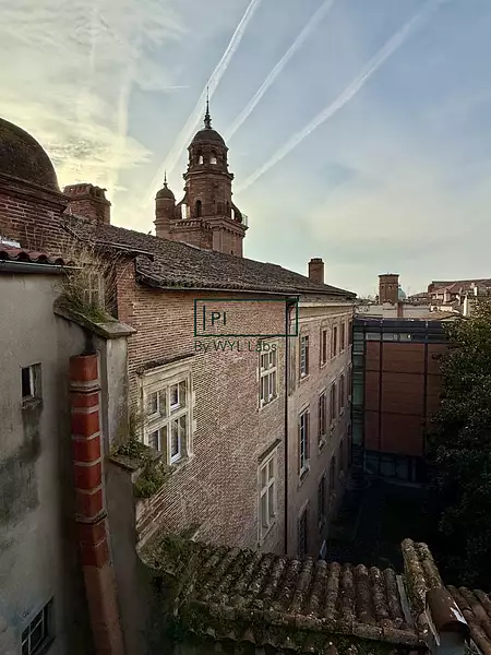 L'appartement, traversant Est/Ouest, offre une vue dégagée et exceptionnelle sur les toits toulousains et les monuments emblématiques de la ville : Dôme de La Grave, Jacobains, basilique Notre-Dame de la Daurade, et clochers historiques.