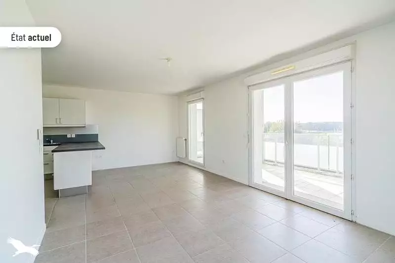 Appartement avec vue imprenable situé au 3ème étage, avec ascenseur, terrasse spacieuse de 20 m². Appartement lumineux, pièce de vie ouverte sur cuisine, trois chambres, une salle de bains, wc séparé. Commodités à proximité ! Proposition d'aménagement virtuel non contractuelle en dernière photo.