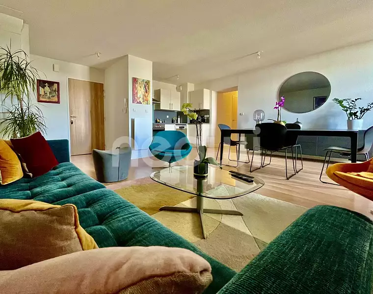 CHÂTEL-GUYON- Appartement T3 de 80.09 m2 loi Carrez dans un ancien hôtel de prestige parfaitement entretenu sur les hauteurs de la ville à deux pas de toutes les commodités. Situé au 4ème étage de la résidence, accessible par 2 ascenseurs, la vue sur les parcs est à couper le souffle. Trois balconnets permettent d'en profiter pleinement. La distribution de cet appartement plein de charme et décoré avec goût est parfaitement fonctionnelle: une entrée avec placards, une belle pièce de vie comprenant salon, séjour et cuisine de plus de 34 m2, un dégagement, un grand cellier, deux très jolies chambres avec dressing intégré, une salle de bains et un wc indépendant. Le tout est en parfait état, l'installation électrique a été refaite intégralement il y a peu, le chauffe-eau est neuf et les radiateurs à inertie ont été installés il y a 3 ans. Les menuiseries en bois avec double vitrage sont en très bon état. Rien à prévoir donc dans ce bel appartement qui n'attend plus que vous! Pour compléter cette jolie prestation, une cave et une place de parking privative extérieure sécurisée par un portail électrique.
