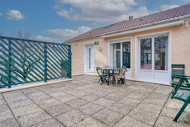 Proche gare RER E, venez découvrir dans une petite copropriété cet appartement idéale pour une famille de 80.4m² habitable et 99m² utiles offrant, une entrée, séjour avec accès une grande terrasse 33m², cuisine indépendante équipée, 2 chambres et un bureau ou chambre d'enfant, une salle de bains, rangements, wc. Combles aménagés en une chambre avec salle d'eau et wc privatif. Un garage fermé et son atelier complètent ce bien.
