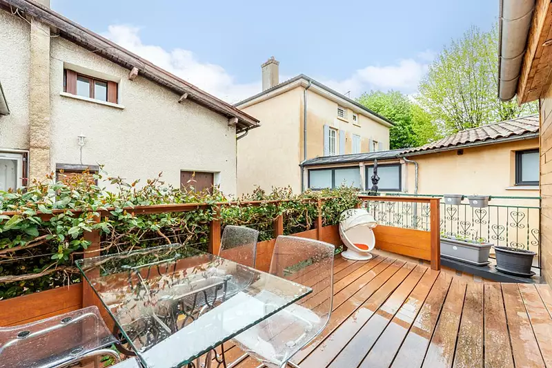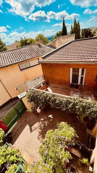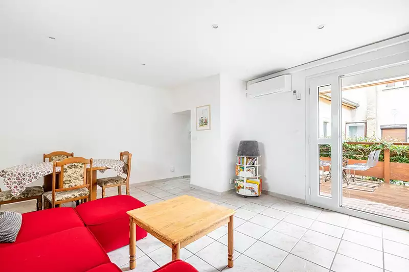 En hyper centre du joli village d'Irigny, commune avec une vie culturelle, sportive et sociale très riche. Au calme et sans travaux à prévoir, venez découvrir ce bel appartement composé de 2 chambres (possibilité 3); une pièce principale avec un accès sur une très belle terrasse, une cuisine équipée qui sera combler les passionnés de cuisine de par sa fonctionnalité, une salle de bains avec toilette, une entrée et un garage - cave. Entre la terrasse et la cour vous pourrez profiter d'agréables moments aux beaux jours. Ce bien est à proximité de toutes les commodités (crèche, écoles primaires, collège), commerces 7jours/7, marché 2 fois par semaine, Lyon Bellecour en 15 min en voiture et 25 min en bus, 15 min en bus du métro et de l'hôpital de St Genis Laval, nombreux parcs à proximité.  Ce bien est vendu au prix de 280.000 euros HAI « Honoraires charge Vendeur - DPE "D" 223 - "D" 47. Il s'agit des lots 4 et 16 qui représentent respectivement  111/1570ème et 380/1570ème des dépenses générales »