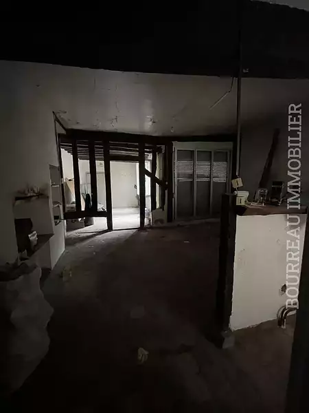 MAISON DE VILLE A FINIR DE RENOVER sur 126 m² de terrain comprenant: entrée, cuisine, salon/ salle à manger, salle de bains, wc. A l'étage: palier desservant 2 chambres, emplacement pour wc avec lave-mains. Grenier et cave.Chauffage gaz de ville (Chaudière neuve), électricité neuve La maison est reliée tout à l'égout.