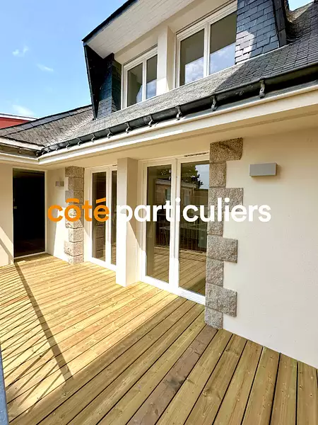 DUPLEX - 2 CHAMBRES - TERRASSE - CAVE - MERVILLE - REFAIT A NEUF - RARE - A VENDRE Venez découvrir chez Côté Particuliers ce superbe duplex refait à neuf avec des matériaux de qualité au sein d'une petite copropriété calme et très sécurisée. Avec son entrée indépendante, ce duplex se compose : - En rez-de-chaussée d'une entrée avec placards ; - Au premier étage : une grande pièce de vie donnant sur une terrasse, une cuisine aménagée et équipée lumineuse, une salle de bains et un W.C. séparé ; - Au deuxième étage : un palier avec rangements dessert deux chambres Un stationnement privatif, une cave et un local à vélo viennent compléter ce bien. Le logement se situe dans la cour de l'immeuble, un portail électrique le sépare de la rue, ouverture sécurisée avec badge. Les logements et les parties communes de la copropriété viennent d'être refaits à neuf. Tous les matériaux sont de qualité et les travaux ont été réalisés par des professionnels (garanties décennales). L'immeuble se situe dans le quartier très recherché de Merville à Lorient. Tous les commerces, transports, commodités et écoles se situent à proximité. Petite copropriété aux faibles charges. Produit rare sur le marché. A visiter sans attendre ! Possibilité d'acquérir un stationnement en sus. (2.99 % honoraires TTC à la charge de l'acquéreur.) Copropriété de 23 lots - dont 10 lots habitation. (Pas de procédure en cours). Charges annuelles : 550 euros. Julie LE BERRE (EI) Agent Commercial - Numéro RSAC : 920 667 888 - LORIENT.