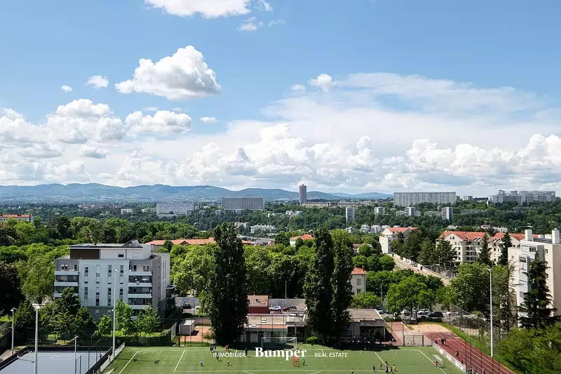 Rénové en 2020, il séduit dès l'entrée par sa vue dégagée de part et d'autre sans aucun vis-à-vis, son calme et cette sensation d'espace et de clarté rare en ville. Le séjour s'ouvre sur un balcon orienté Ouest, parfait pour admirer les couchers de soleil et la vue dégagée sur les monts du lyonnais. La cuisine dînatoire est séparée, aménagée et équipée et bénéficie d'un cellier attenant : l'endroit idéal pour prendre le petit-déjeuner au soleil en observant la chaîne des Alpes et le Mont Blanc à l'Est.