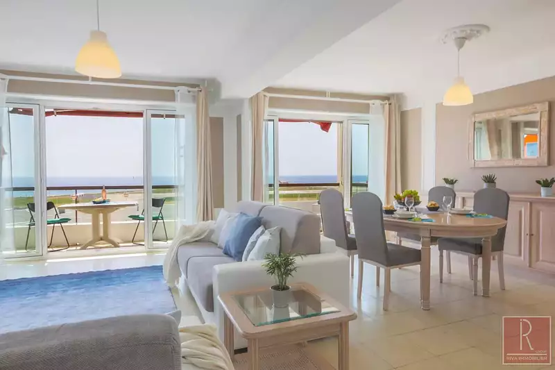 Cet appartement traversant se compose d’une élégante entrée, d’un vaste séjour baigné de lumière face à la mer, d’une cuisine séparée et entièrement équipée avec balcon, d’une chambre avec armoire miroir et balcon, d’une salle d’eau moderne et de WC indépendants.