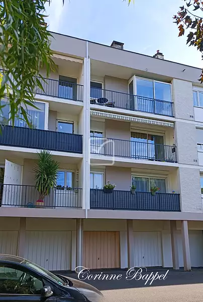Situé en deuxième étage sans ascenseur , sur une superficie habitable d'environ 80 m2, le logement est un traversant (donne sur 2 côtés de l'immeuble) et comprend : une entrée avec placard, cuisine séparée aménagée et équipée qui donne sur un cellier, séjour sur balcon, 3 chambres avec placards, salle d'eau avec balcon fermé qui vous permet de faire sécher votre linge en extérieur, wc séparé. Garage privatif. Local à vélo commun.