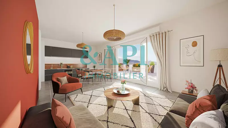 Faites l'acquisition d'un appartement 4 pièces et de son espace extérieur. Cet appartement totalisant 79.78m2 est composé de 3 chambres, une salle de bain, salle d'eau, un coin salon de 23.23m2 et un espace cuisine. À l'extérieur, vous disposerez d'une terrasse d'une surface de 33..4m2
