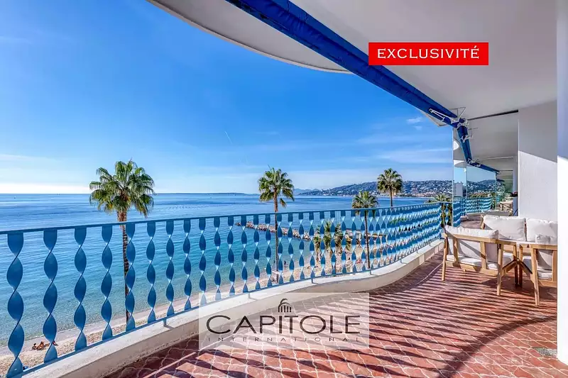 Vue mer panoramique à couper le souffle depuis ce spacieux 3 pièces traversant de 81 m² agrémenté d'une profonde terrasse sur la mer, les Îles de Lérins, le Cap d'Antibes et l'Estérel.