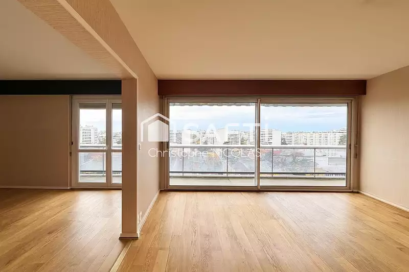 Cet appartement très calme au 9eme étage propose une belle pièce à vivre avec une grande baie vitrée sur toute sa largeur et une cuisine séparée. Côté nuit, vous profiterez de 2 chambres. Une 3eme chambre peut être facilement modulé via le double séjour existant.
