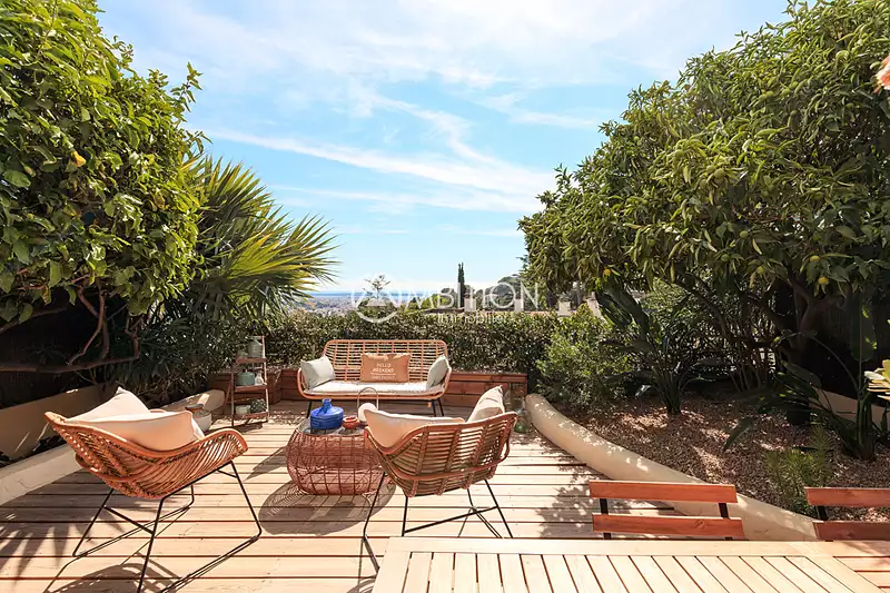 Dans le quartier résidentiel du Mont Joli, cet appartement de trois pièces en rez-de-jardin offre un cadre de vie calme et lumineux, à quelques minutes du centre du Cannet. Rénové avec des prestations de qualité, il se compose d'une entrée menant à un séjour avec cuisine américaine aménagée et équipée, ouvrant sur un jardin exposé plein sud bénéficiant d'une vue dégagée sur la mer et les îles de Lérins. L'espace nuit comprend deux chambres, dont une suite avec salle de douche privative, ainsi qu'une salle de bain et des toilettes indépendants. Cet appartement dispose de nombreux placards de rangement intégrés. Les deux chambres donnent accès à un second jardin, créant une belle continuité entre les espaces intérieurs et extérieurs. Une cave et une place de parking complètent ce bien, rare par sa vue, son agencement et son emplacement privilégié. A VISITER SANS TARDER ! Copropriété de 100 lots - dont 50 lots habitation. (Pas de procédure en cours). Charges annuelles : 3996 euros. Manon ROMAGNOLI (EI) Agent Commercial - Numéro RSAC : 909782286 - Grasse.