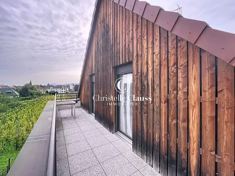 A seulement 5 minutes à pied du centre-ville d'Obernai, et à proximité immédiate des commerces tout en étant au calme, appartement 3 pièces situé au dernier étage d'une copropriété parfaitement entretenue bâtie en 2015. D'une surface exacte de 81.74 m² au sol dont environ 65m² habitables, il se compose d'une entrée, d'une belle pièce de vie lumineuse d'une surface de près de 38m² au sol comprenant une cuisine aménagée et équipée ouverte sur le séjour, de deux chambres, d'une salle d'eau fonctionnelle, ainsi que d'un WC séparé. L'appartement bénéficie également de deux spacieuses terrasses de chaque côté du logement (accès pièce de vie et chambres), permettant de profiter pleinement des extérieurs tout au long de la journée. Un grand garage double en enfilade complète ce bien, offrant un vaste espace de stationnement ou de rangement. INFORMATIONS COMPLEMENTAIRES: - Chauffage collectif gaz avec compteur individuel et eau chaude compris dans les charges - Pas de travaux à prévoir - Copropriété récente - Faibles charges Les informations sur les risques naturels auxquels ce bien est exposé sont disponibles sur le site Géorisques : www.georisques.gouv.fr (6.00 % honoraires TTC à la charge de l'acquéreur.) Copropriété de 44 lots - dont 28 lots habitation. (Pas de procédure en cours). Charges annuelles : 1414.72 euros.