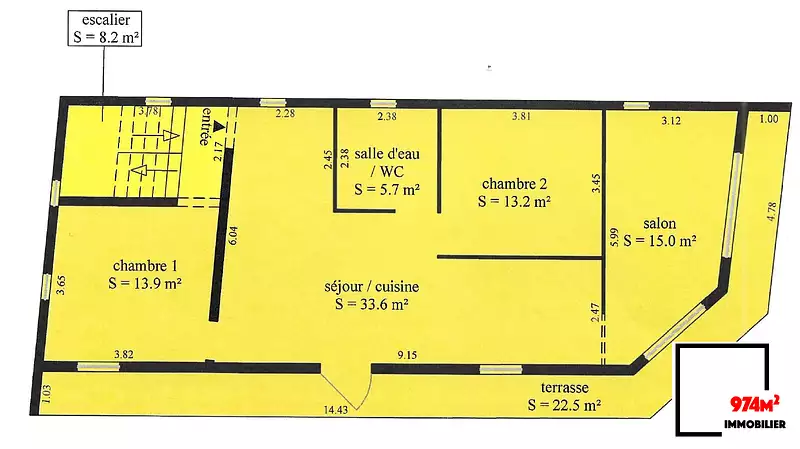 L'agence 974m2 vous propose en exclusivité proche de l'Avenue de Bourbon, un grand appartement familial type T3 d'environ 81m² au 1er étage comprenant:
