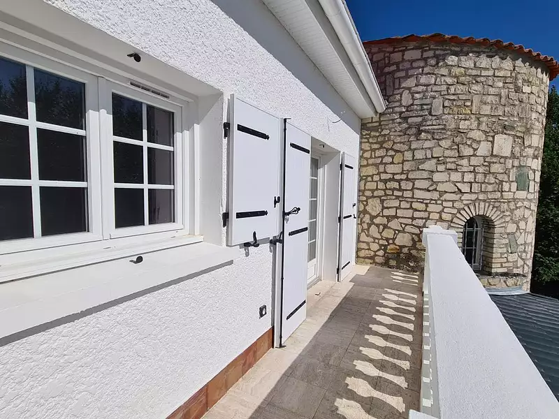 Dans un petit immeuble avec de très faibles charges - au 1er étage bel appartement atypique entièrement rénové (électricité, sanitaires, plomberie, chauffage, isolation...) offrant une pièce de vie ouvrant sur balcon, une tour à usage de loggia, deux chambres, salle d'eau, wc et cellier.