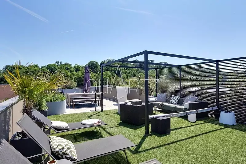 Au sein d'une résidence de standing de 2019, appartement exceptionnel au dernier étage avec toit terrasse de 100m². Entrée, séjour lumineux avec vue dégagée sur la verdure, cuisine ouverte, 2 chambres, 2 salles d'eau, buanderie. Chambre parentale au calme ouvrant sur balcon avec vue sur tout Versailles. Solarium aménagé avec jacuzzi et pergola, vue panoramique. A proximité immédiate des commerces, des écoles et des transports. Salle de sport, salle de coworking, parking. Bien soumis au statut juridique de la Copropriété. Nb de lots : 178. Charges annuelles de copropriété (Montant moyen annuel quote-part du budget prévisionnel vendeur) : 3 085 . Pas de procédure en cours. Honoraires : 3,41 % TTC inclus charge acquéreur (820 000 hors honoraires)