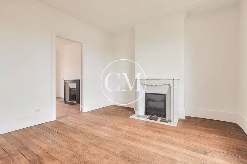Très bel appartement de caractère, 4 pièces principales, cheminées, parquet, moulures, composée : Entrée,