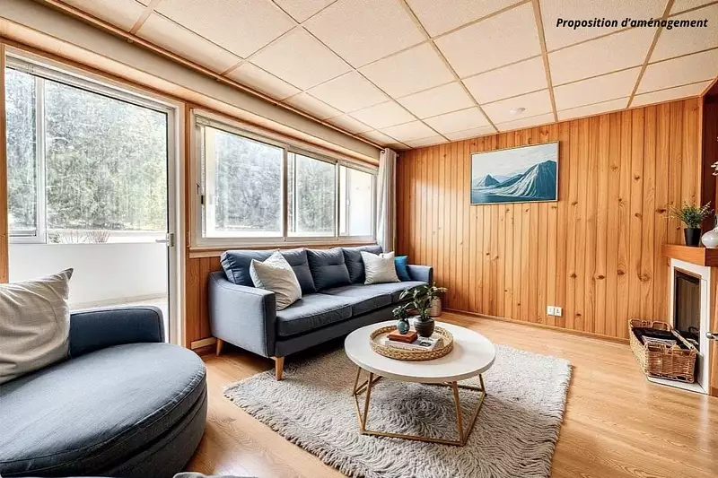 - Séjour lumineux donnant sur un parc verdoyant,