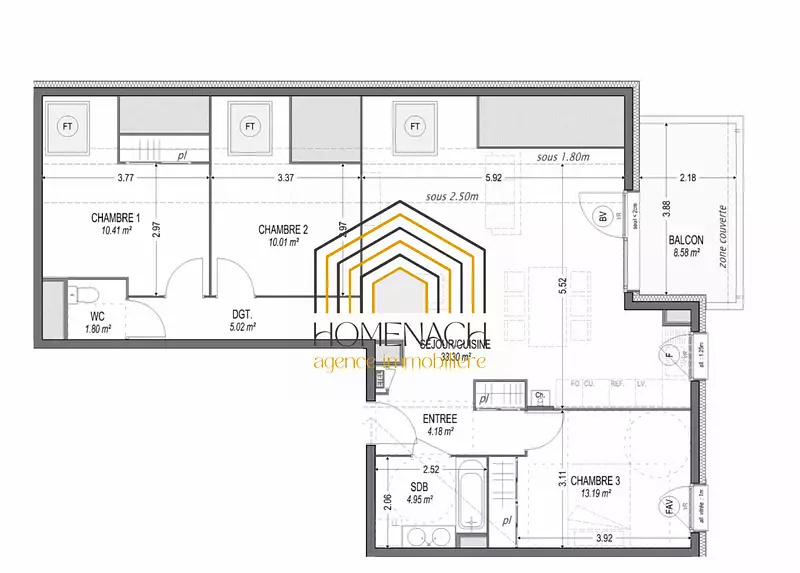 Découvrez ce magnifique appartement T4 non meublé, situé au premier étage d'un immeuble de standing, offrant une surface habitable de 82,86 m² et un balcon de 8 m². Cet appartement allie élégance et confort, parfait pour une famille ou pour ceux qui recherchent un espace de vie spacieux et lumineux.