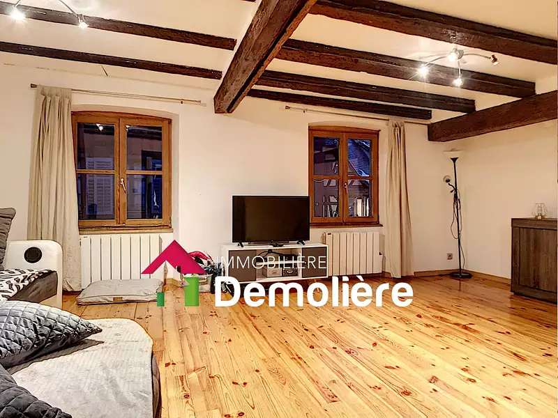Spacieux 2-3 pièces en duplex de 82m² (105m² au sol) au deuxième et dernier étage d'une maison alsacienne située au centre de Ribeauvillé au 88 grand Rue.