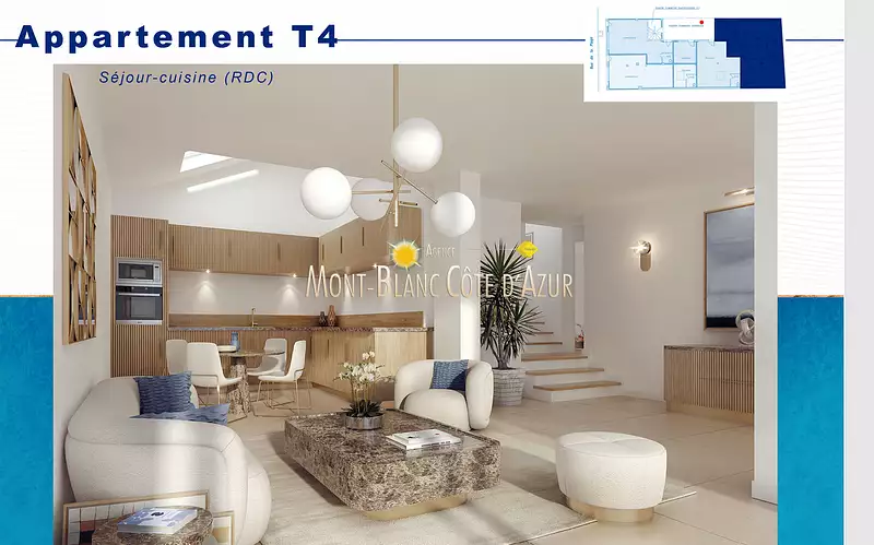 Rare à la vente, bel appartement type F3 + mezzanine de 82 m2 avec jardinet + terrasse indépendante.