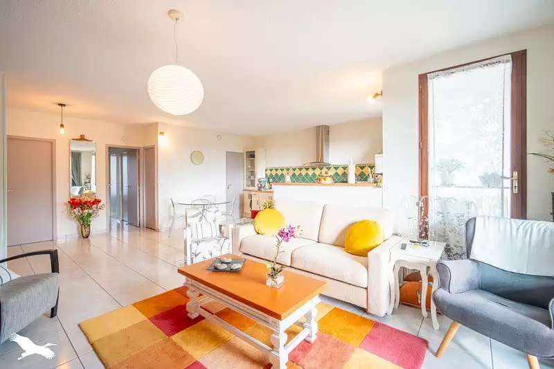 Dans un village dynamique aux multiples commodités, à proximité du lac, venez découvrir cet appartement au dernier étaged' une résidence plein centre ville. Idéalement agencé de par sa double exposition, ses deux chambres, son bureau, sa pièce de vie avec cuisine équipée. Vous profiterez de l 'extérieur avec ses 2 balcons.